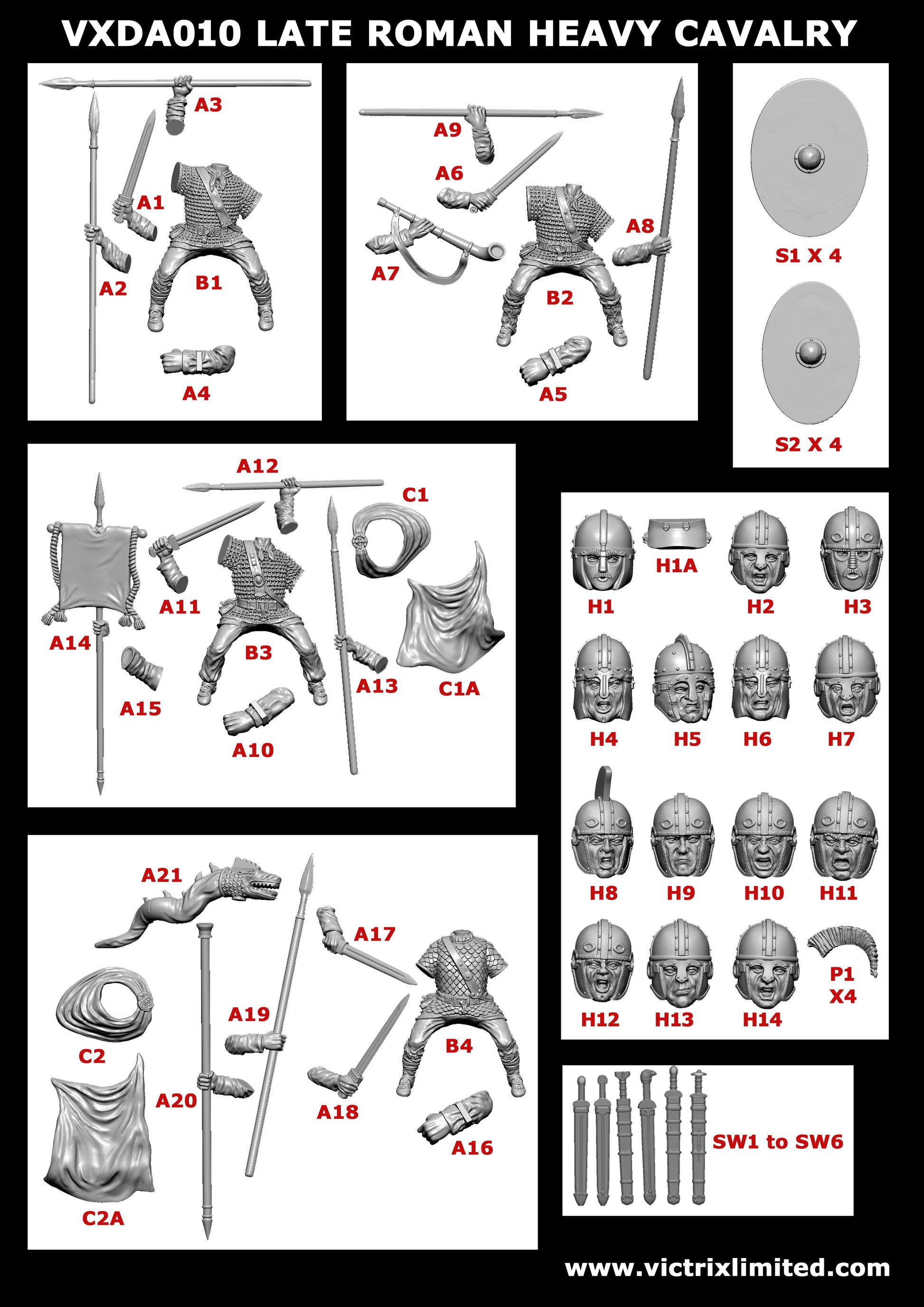 This fantastic set of miniatures represents Roman heavy cavalry in mail and scale armour of the 4th to 6th Centuries.